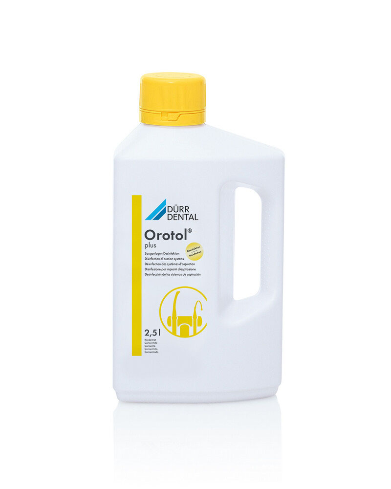 В 1965 году компания DURR DENTAL впервые представила на мировом рынке средство Orotol для дезинфекции аспирационных установок. Сегодня Orotol plus является самым востребованным дезинфицирующим средством в этой области. Причины очевидны: этот простой в применении и эффективный продукт имеет широкий спектр действия и хорошую совместимость с материалами. В основе лежит многолетний опыт DURR DENTAL как производителя аспирационных установок, который необходим для разработки подобных продуктов. Дезинфицирующее средство для аспирационных систем должно отвечать особым требованиям. Например, продукт не должен пениться, чтобы не повредить установку. |